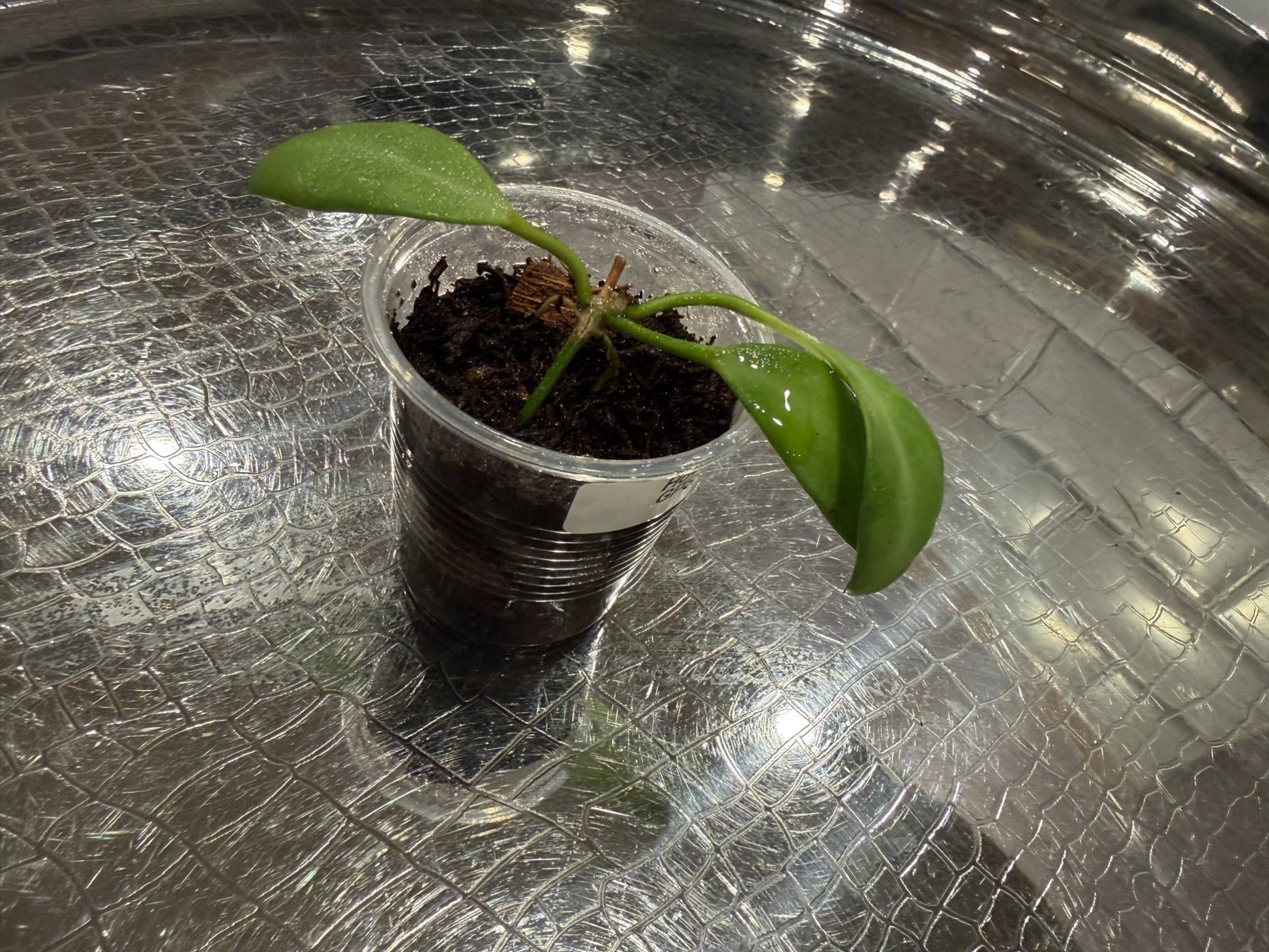 Hoya GPS 7731 is a unique, collectible species best known for its round, coin-shaped leaves and soft minty green coloration. New growth often emerges even lighter, giving the plant a fresh, luminous look. As it matures, the leaves take on a velvety texture and a fuller, perfectly rounded shape that makes this clone especially sought after by Hoya collectors. Its vines trail beautifully and can also be trained onto a small trellis.