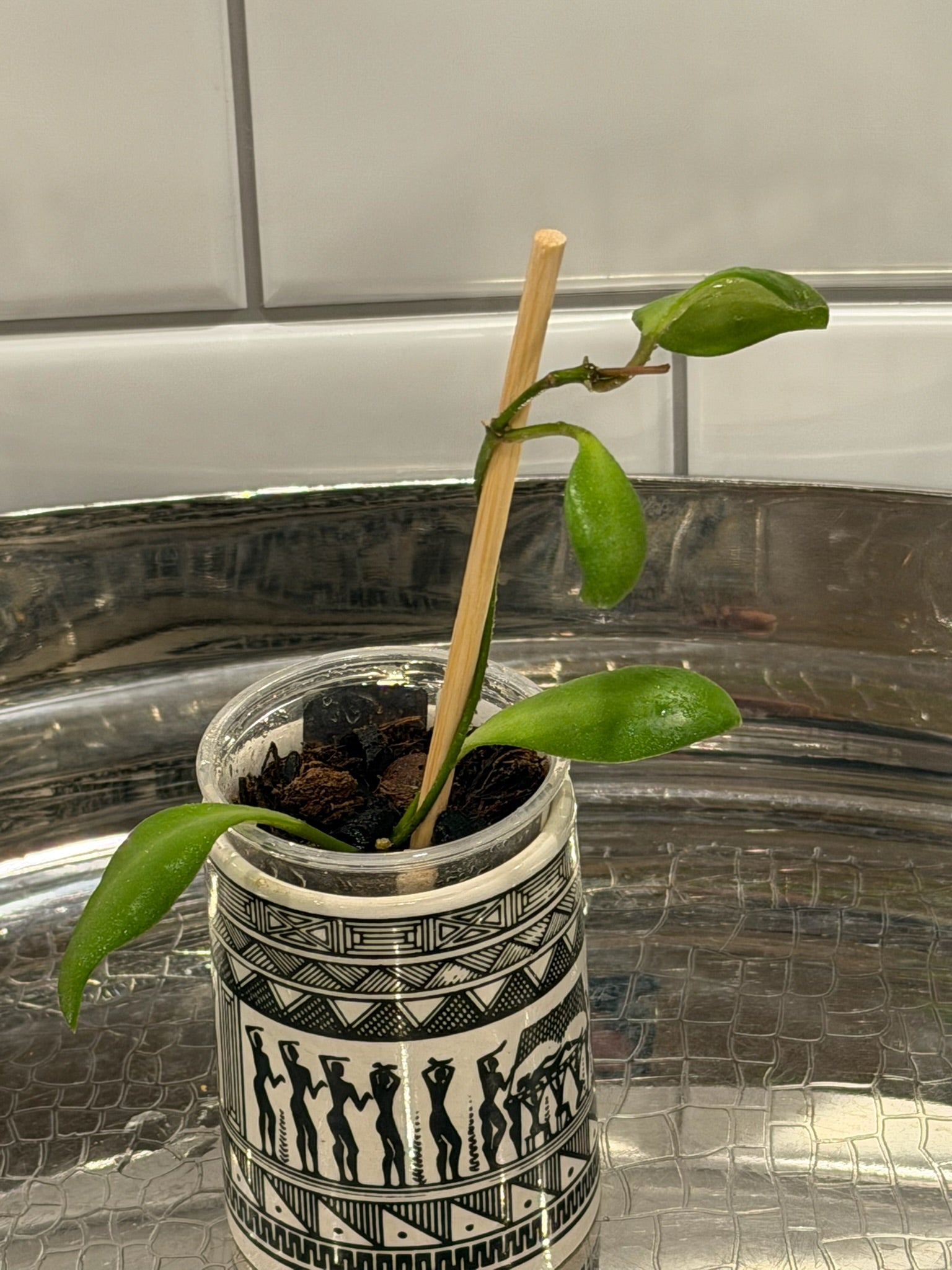 Hoya GPS 7731 is a unique, collectible species best known for its round, coin-shaped leaves and soft minty green coloration. New growth often emerges even lighter, giving the plant a fresh, luminous look. As it matures, the leaves take on a velvety texture and a fuller, perfectly rounded shape that makes this clone especially sought after by Hoya collectors. Its vines trail beautifully and can also be trained onto a small trellis.