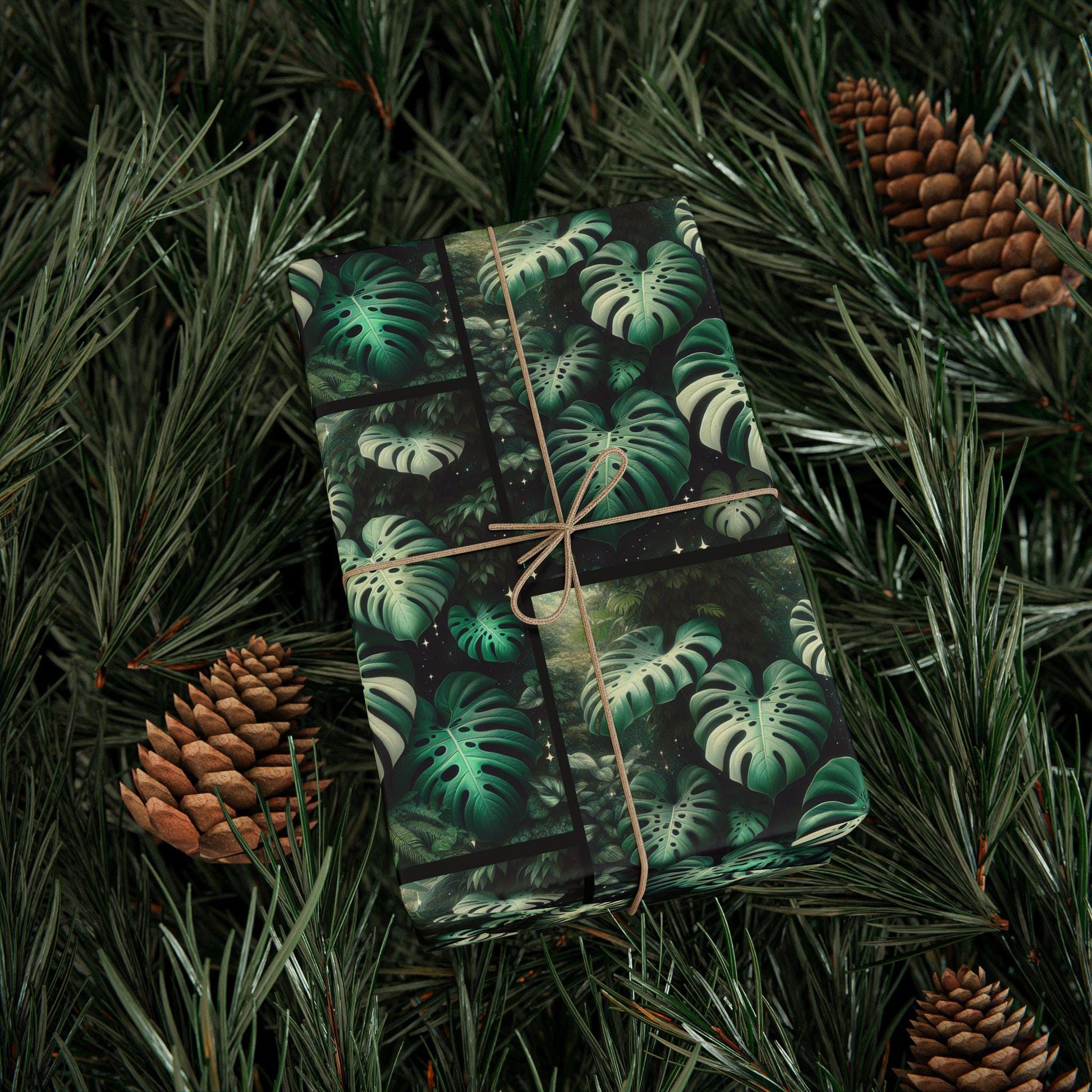 Monstera Leaf Wrapping Paper - Tropical Botanical Gift Wrap for Plant Lovers, Jungle Aesthetic Gift Packaging, Eco-Friendly Paper