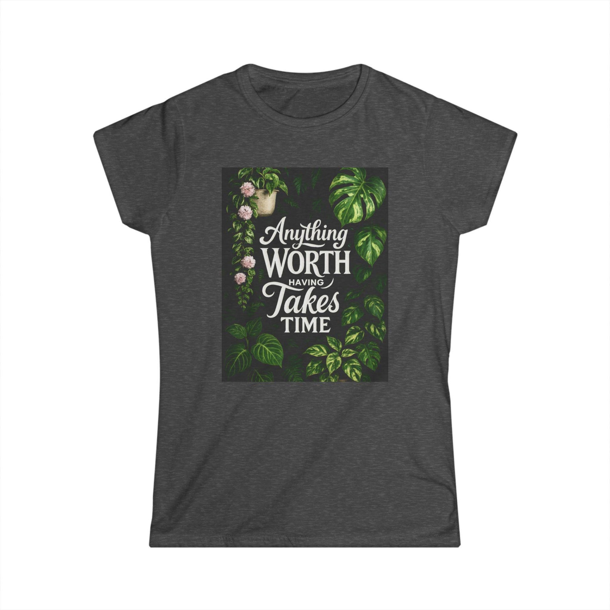 Women’s Inspired Softstyle Tee – “Anything Worth Having Takes Time”